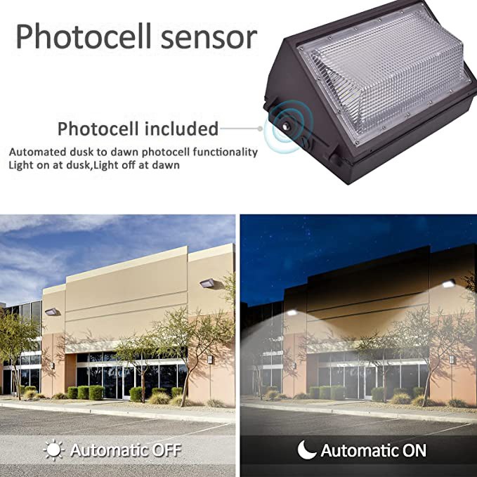 LED Wall Pack Light applies for outdoor Commercial and Industrial Lighting for Buildings,Warehouses, Parking Lots,Yard, This commercial outdoor security light with photocell can automatically turns ON at sunset and OFF at sunrise.It reduce your electricity running cost with up to 80%.
