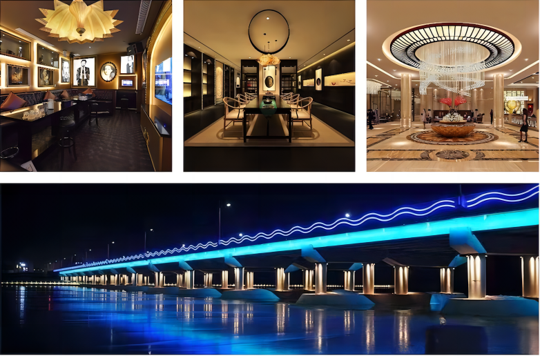 installations on facade lighting, indoor and outdoor projects.
