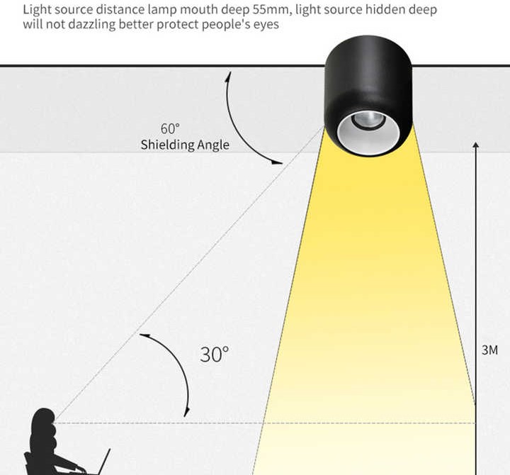 Surface mounted downlight deep anti-glare spotlight is a fantastic lighting option that combines style and functionality. This downlight is designed with a sleek and modern finish, making it perfect for use in a variety of settings, from homes to commercial spaces. It allows you to experience the beauty of a well-lit room, it is a perfect blend of functionality and amazing aesthetics. Every piece has been crafted with passion and follows international standards on quality and style.