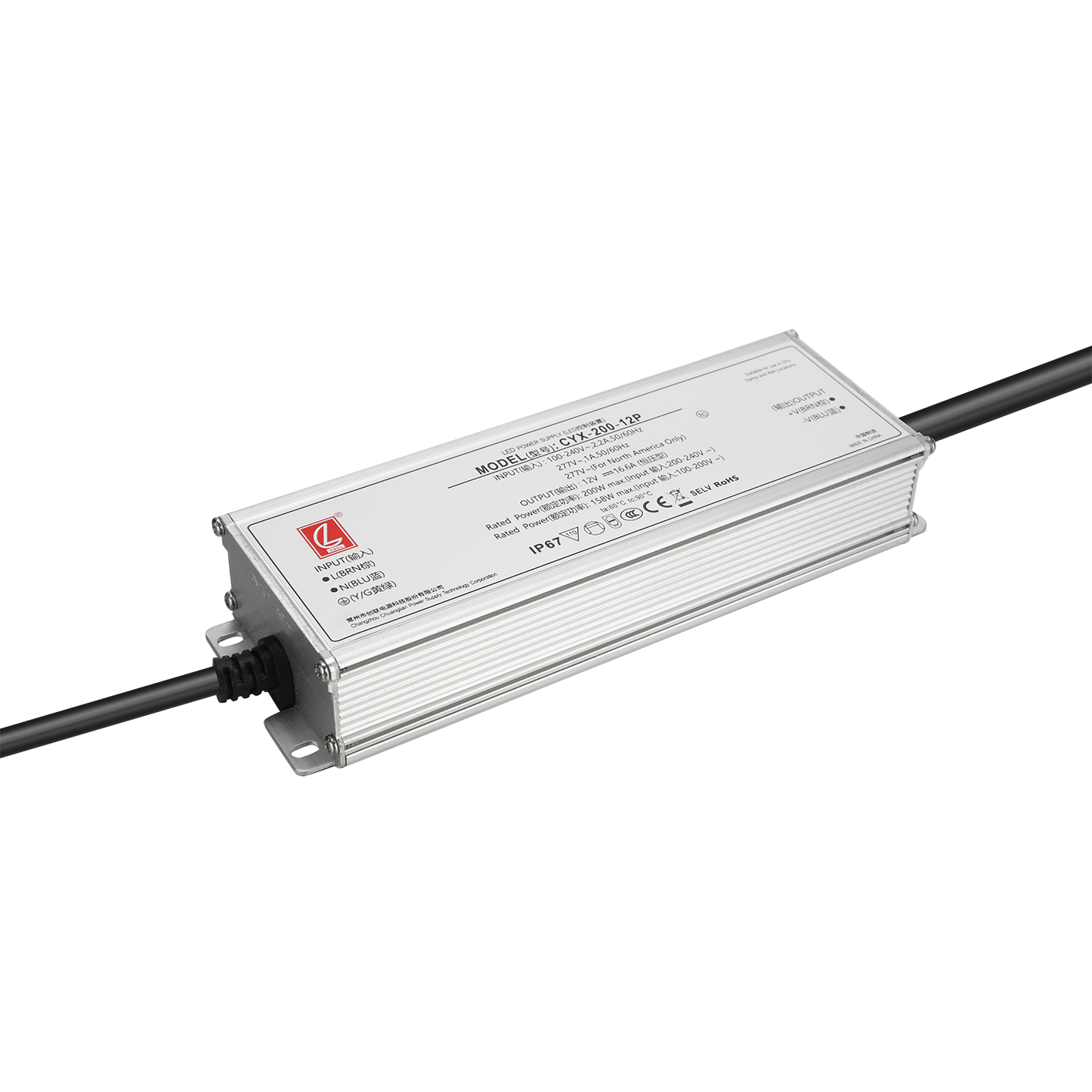 The CYX-200 series comprises 200W outdoor LED drivers featuring both constant voltage and constant current output modes. They offer a wide input voltage range, exceptionally high power factor, and extremely low THD. This series exhibits high-temperature resistance, with a maximum ambient operating temperature of 70°C at full load. It is specifically engineered for outdoor lighting applications including urban illumination, road lighting, tunnel lighting, high-mast lighting, and sports field lighting. The adjustable output current facilitates flexible LED luminaire design, significantly enhancing versatility. Exceptional conversion efficiency, a compact housing design, effective thermal management, and comprehensive protection mechanisms ensure long-term stable operation.