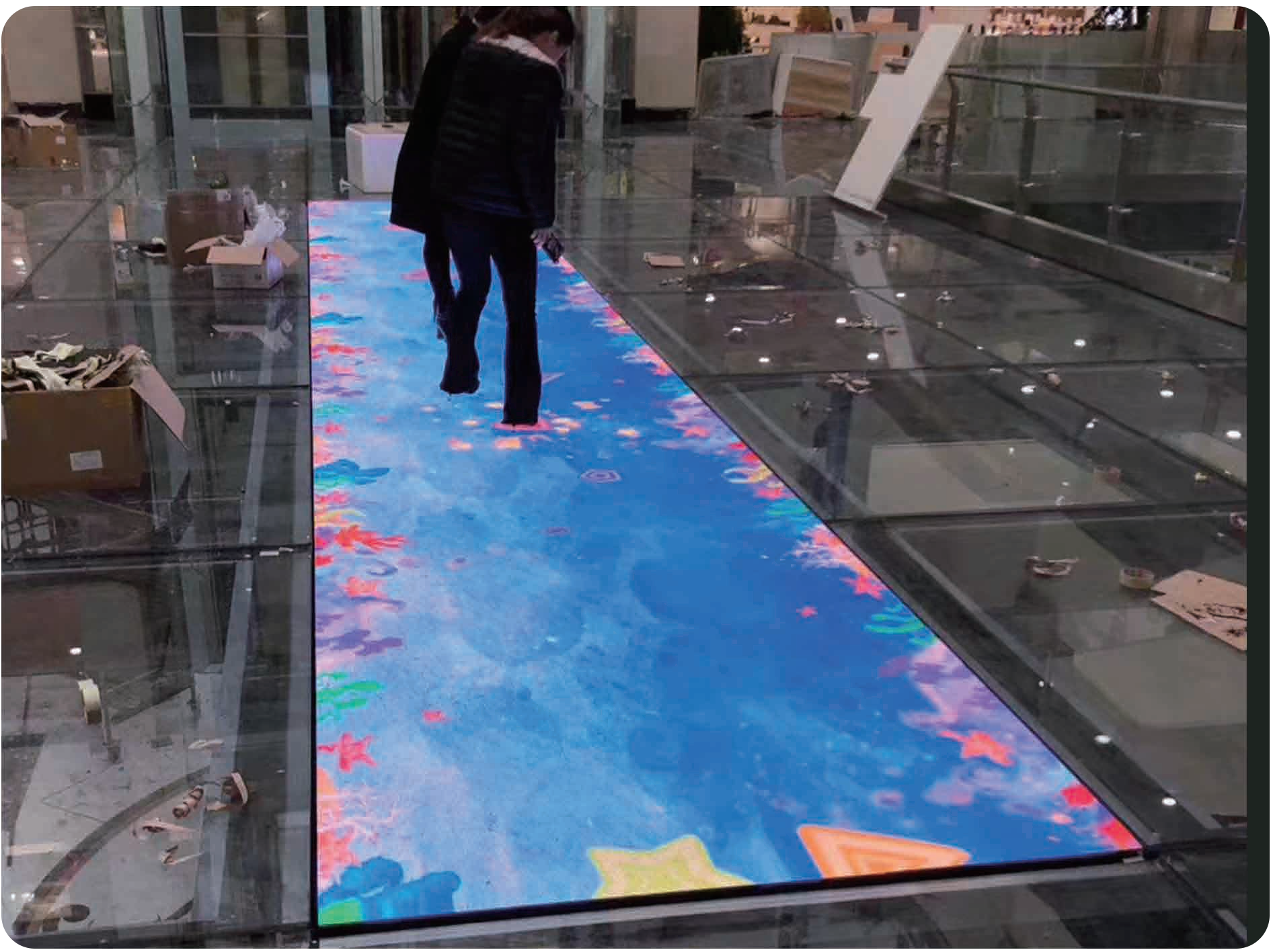 - Super load-bearing. Each component of the LED intelligent interactive floor screen is designed according to different mechanics, and the ultimate load-bearing capacity per square meter can be as high as 3 tons.